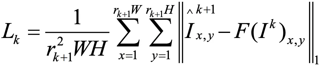 网络是由三个级联的FSRCNN组成。对于每个子网络,一方面,输出图像将进入下一个级联的子网络进行训练。另一方面,它将与相应的真实HR图像形成一个子损失函数。整个网络的损失函数是由三个子损失函数组成的。在论文实验中使用的𝐿0, 𝐿1, 𝐿2分别代表三个子网络的损失函数。整个网络的损失函数表示为: