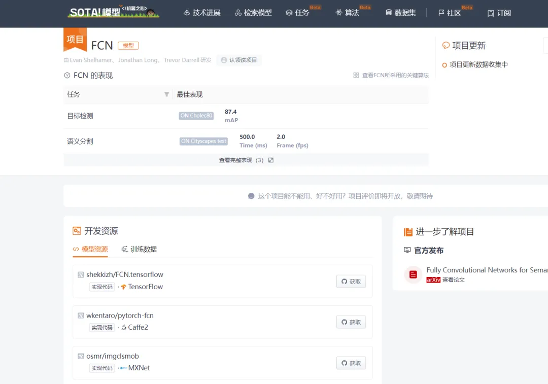 | FCN | 前往 SOTA!模型平台获取实现资源:https://sota.jiqizhixin.com/project/fcn |