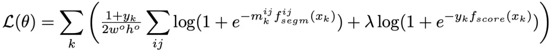 DeepMask的训练过程对于分割任务是很有借鉴意义的。这里,网络的两个分支共同训练,损失函数如下: