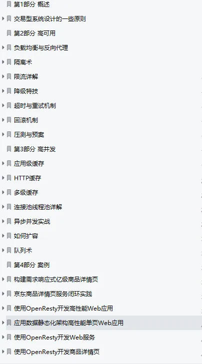 怎么办?当然只能学了!(手动狗头)如果大家近期确实是需要补充高并发以及系统架构设计这方面的知识,那作为互联网雷锋的我自然不能抠抠搜搜,今天就把前端时间从阿里老哥手上淘到的一套阿里双11高并发系统架构设计核心技术全解开源给大家,希望对大家有所帮助~
