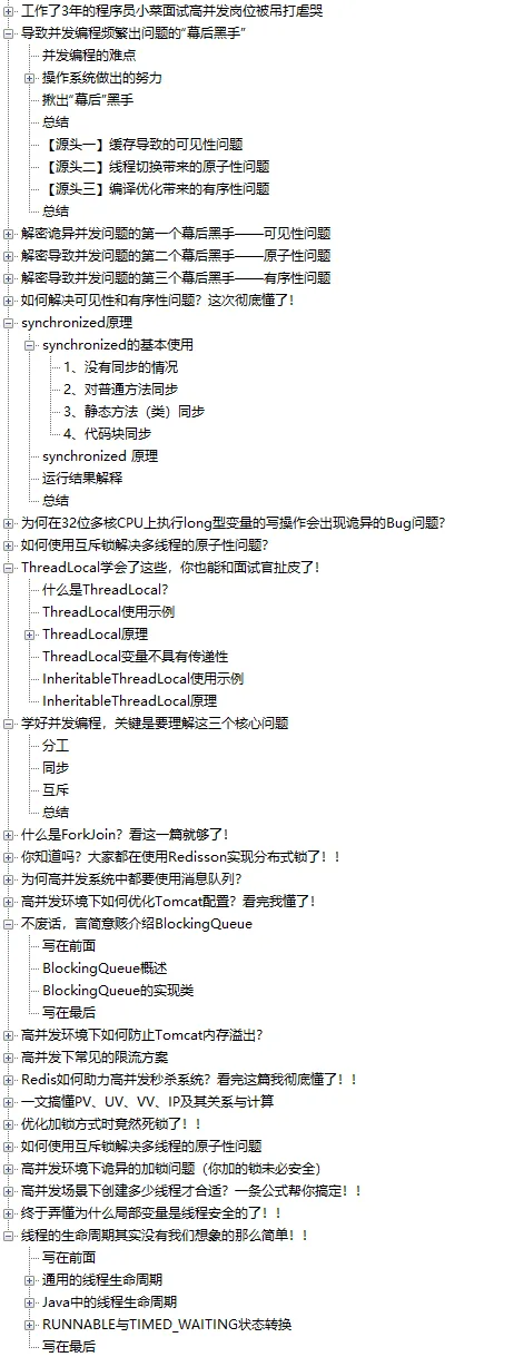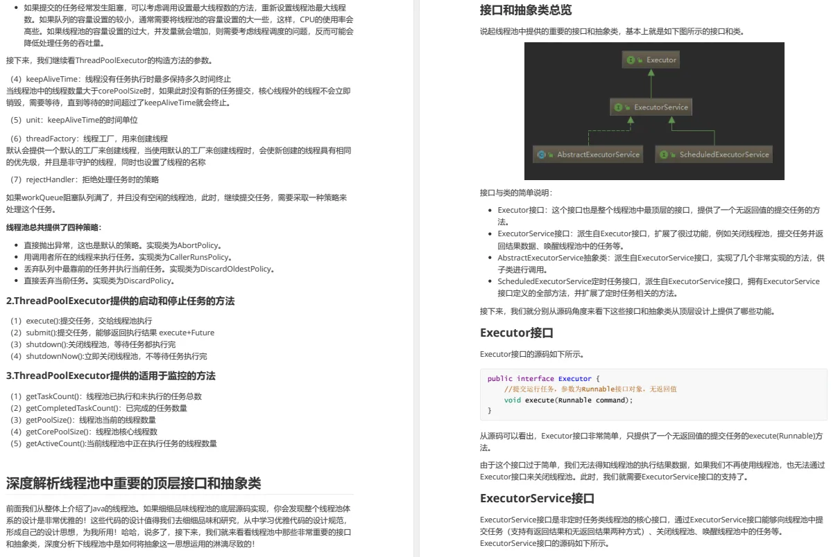 笔记包含基础,实战,源码分析,面试,系统架构五部分,把并发编程的方方面面全部讲得明明白白。由于笔记一共有近400页,平台篇幅限制无法全部细细为大家展示出来,需要完整版的小伙伴可以点击此处来获取就可以了!