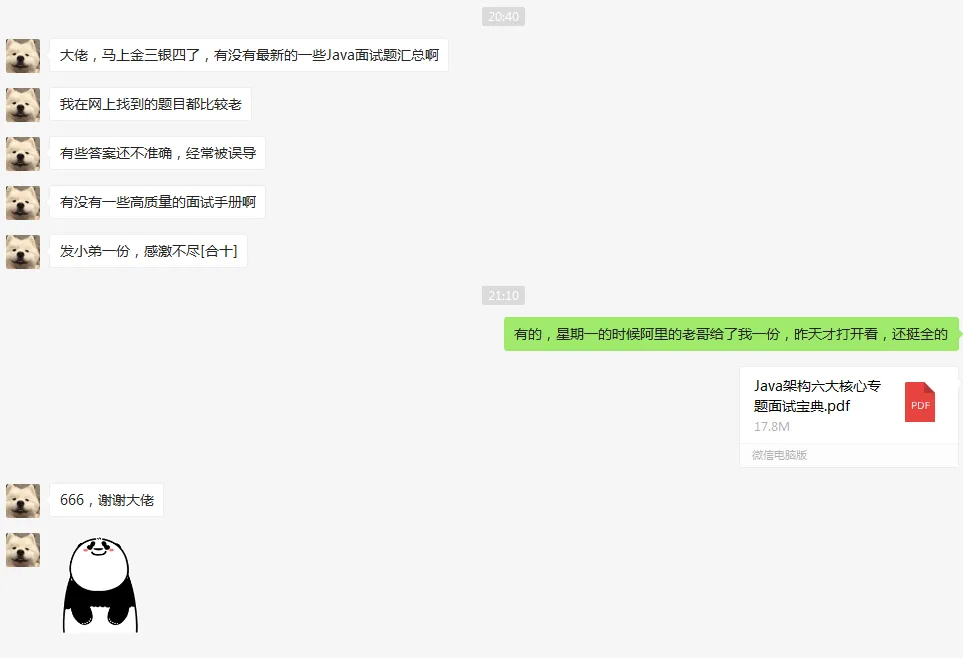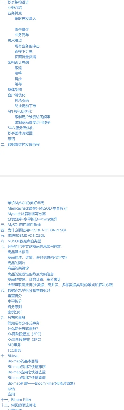 但其实只要你不做收藏怪,好好地刷一刷,面试前做好准备,面试后做好复盘,不存在拿不到理想的Offer退而求其次这种情况。这不马上到金三银四了,已经有不少小伙伴出去面试过了,跟我反馈的效果都不是很理想,也有很多粉丝后台私信我说想要一份最新的,高质量的面试突击手册,金三银四想冲一冲。LZ前段时间也是偶然得到这份阿里巴巴Java架构六大核心专题面试宝典,昨天看了下,内容还是挺全的,都是些大厂的面试真题汇总。