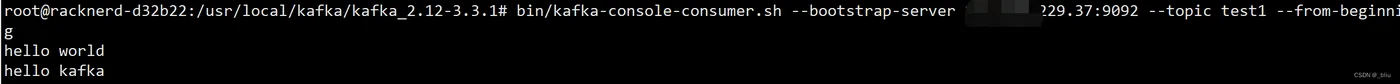 bin/kafka-console-consumer.sh --bootstrap-server yourhost:9092 --topic test --from-beginning