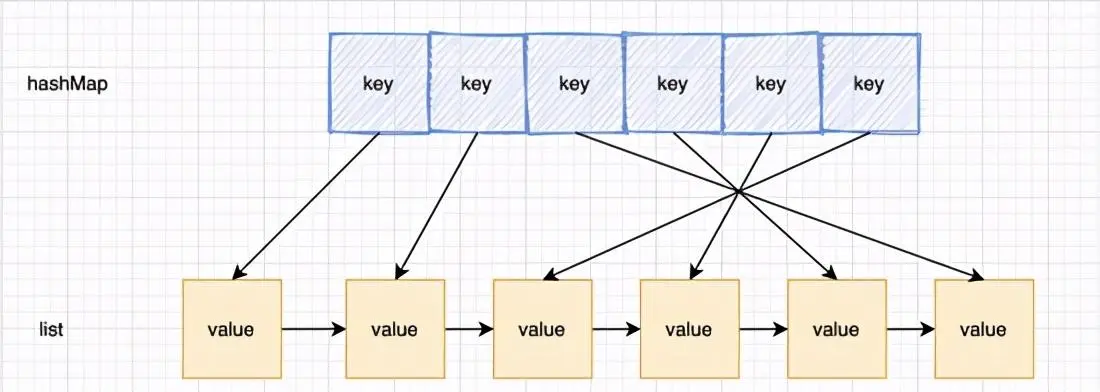 所以最终的解决方案就是采用 「 哈希表+双向链表 」 的结构