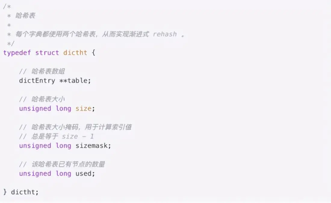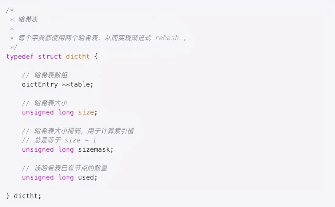redis针对TTL时间有专门的dict进行存储,就是redisDb当中的dict *expires字段,dict顾名思义就是一个hashtable,key为对应的rediskey,value为对应的TTL时间。 dict的数据结构中含有2个dictht对象,主要是为了解决hash冲突过程中重新hash数据使用。