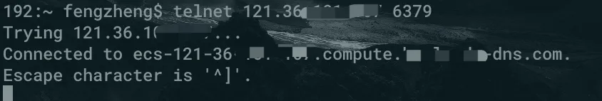 6、我用 telnet 连接这台服务器的 6379 端口 telnet ip 6379,因为这台服务器上装着 redis,可以模拟发数据。