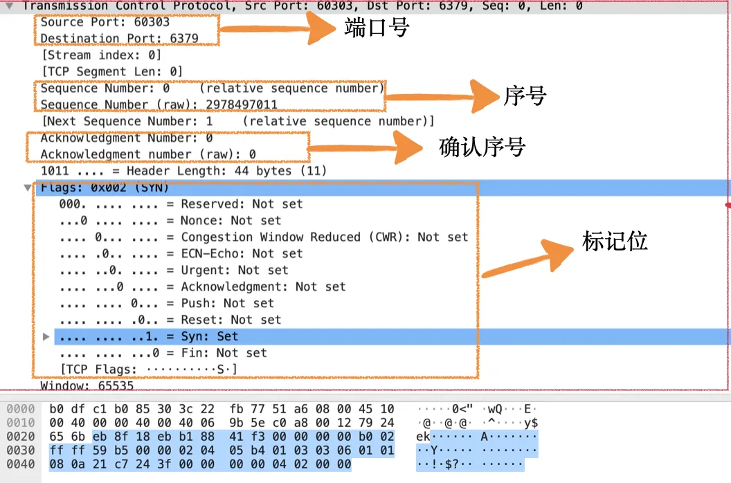 大小为2个字节,表示发送方自己的接收窗口,用来告诉对方允许发送的数据量,最大为65535字节。