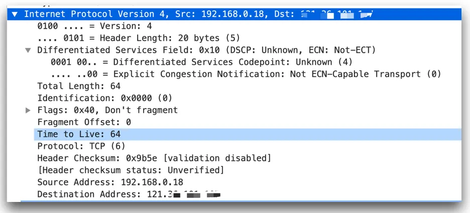 之所以需要首部长度,是因为可选项的大小是不固定的,如果没有可选项的话,那首部长度就是 20字节。这个标示部分占 4 bit,单位是4字节,4bit 可表示的最大值是 15,一个单位表示的长度是4字节,所以首部长度最大可以是 15 x 4字节,也就是 60 字节。