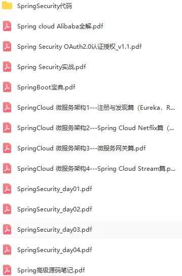 如上图所示,这是我一位朋友面试蚂蚁金服的时候有关Spring被问到的十个问题。可以看出现在的面试并不是你背背面试题就可以过的,基本都会追问你底层原理源码以及实际应用。但源码这东西晦涩难懂,大家的反馈都是自学很费力,效果还不佳;网上相关的资料是多但都是从零到一讲解,内容太庞杂,没有突出重点,看起来效率也不高,为了解决大家这种困惑我索性直接从阿里的一位老哥手上要来了一套其内部通用的Spring源码全家桶核心宝典(包含了Spring源码,SpringBoot应用,以及SpringCloud&SpringCloud Alibaba实战,SpringSecurity实战一共13份文档~)下面一起分享给大家!
