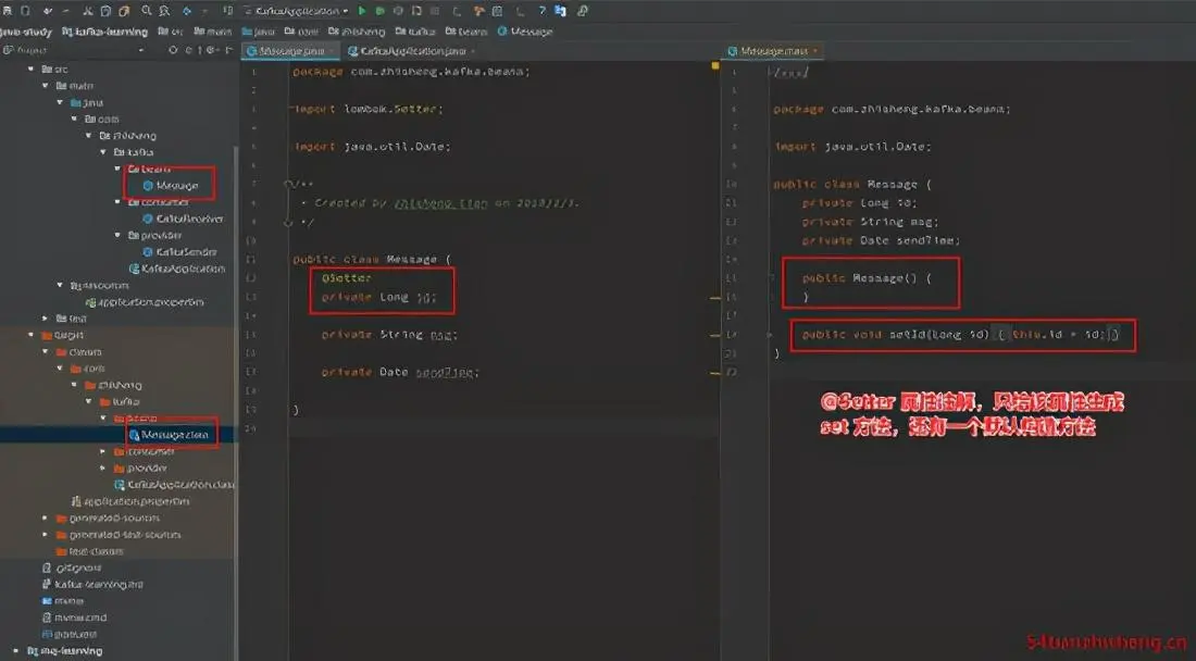 注解在 属性 上;为单个属性提供 set 方法; 注解在 类 上,为该类所有的属性提供 set 方法, 都提供默认构造方法。