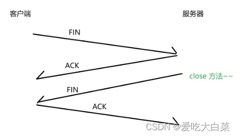 四次挥手就是客户端发送一个结束报文,服务器收到后回应一下,然后服务器发送一个结束报文,客服端再回应一下,在服务器会有发送结束报文时,我们无法确定他是什么时候发的,他的时间不固定,因此我们一般将ACK和FIN两个报文分开发送。