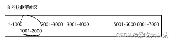 由于1001-2000这之间的数据丢了,所以接收方仍然在索要1001,接下来的几次ACK确认序号都是1001, 发送方就会感觉到异常,重写发送1001-2000这个数据了,发送成功后,接收方会返回7001这个确认序号,因为2001-7000之间的数据我们已经收到过了,因此,我们再要数据就要没有发送过来的数据了,看下图: