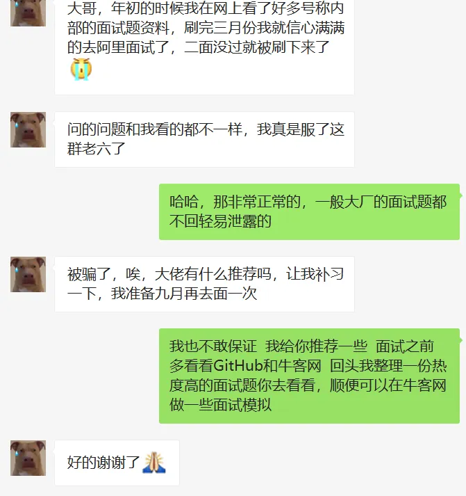 因此收到了一个面试失败的粉丝回复,面试失败了