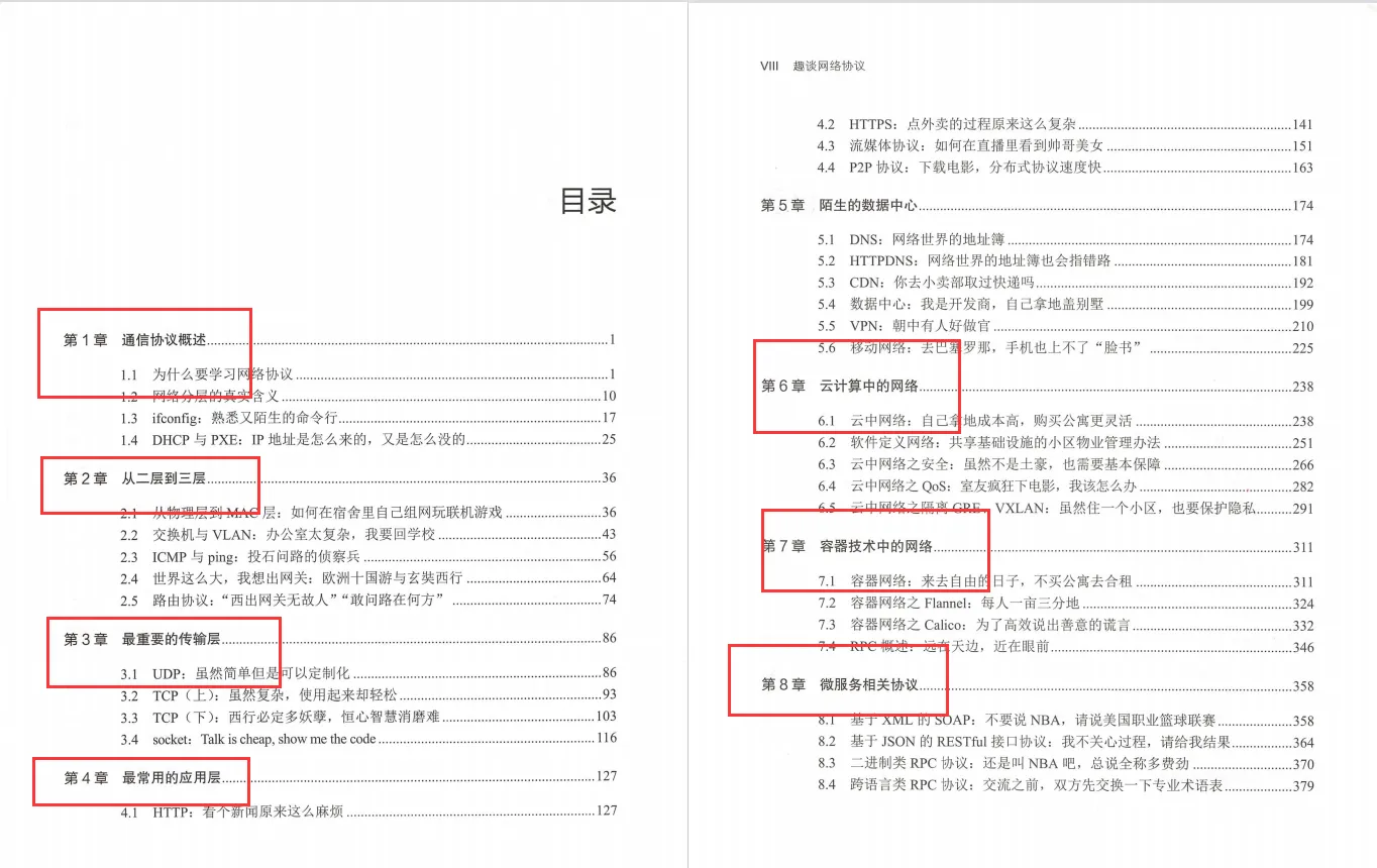 文章分为9大章节:通信协议概述,从二层到三层,重要的传输层.常用的应用层.陌生的数据中心﹒云计算中的网络.容器技术中的网络.微服务相关协议与网络协议知识串讲﹒整整1200页。