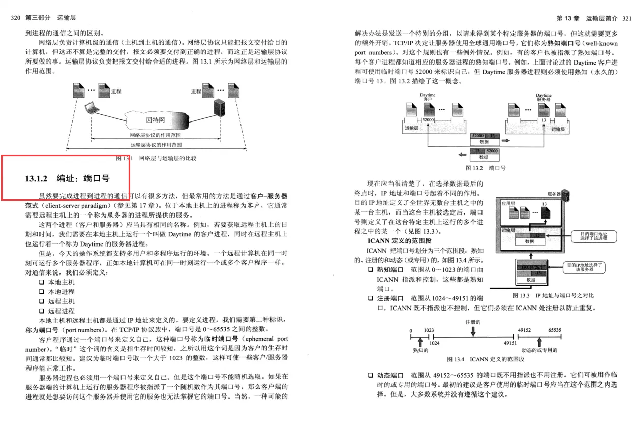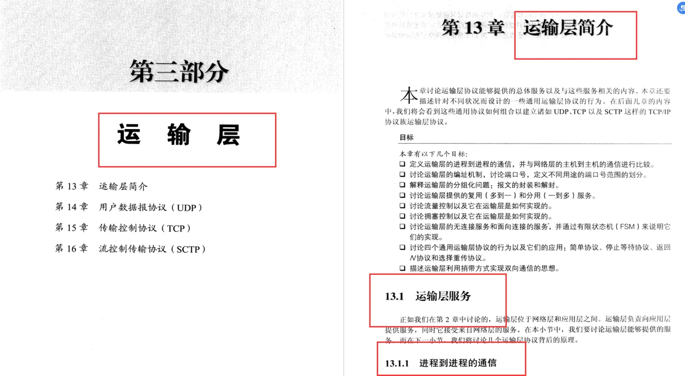 第三部分(运输层),包括第13~16章,介绍了运输层的总体概念(第13章),