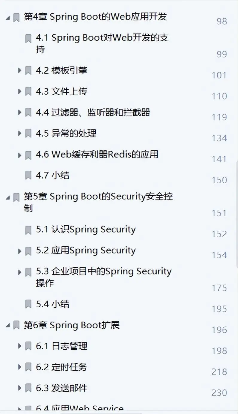 本章介绍了在Spring Boot项目中集成Web模块的开发过程,包括Spr ing团队出品的Thymleaf模板引擎,它能够给用户显示渲染后的页面。本章通过一个文件上传的例子,讲解了文件上传的原理。Web开发离不开过滤器、监听器、拦截器和异常处理,本章介绍了它们的原理和使用方法,最后介绍了项目开发中常用的缓存利器Redis,包括它的使用场景和基础知识。