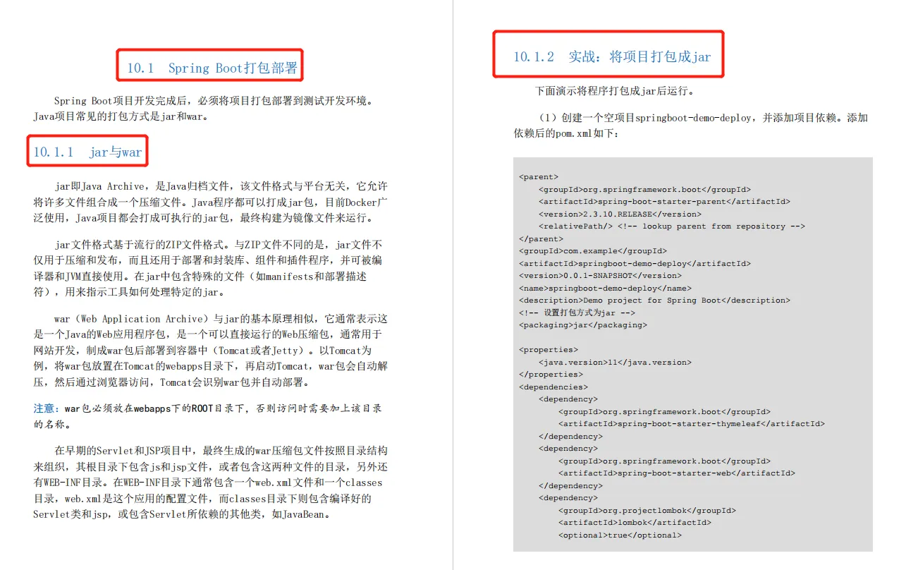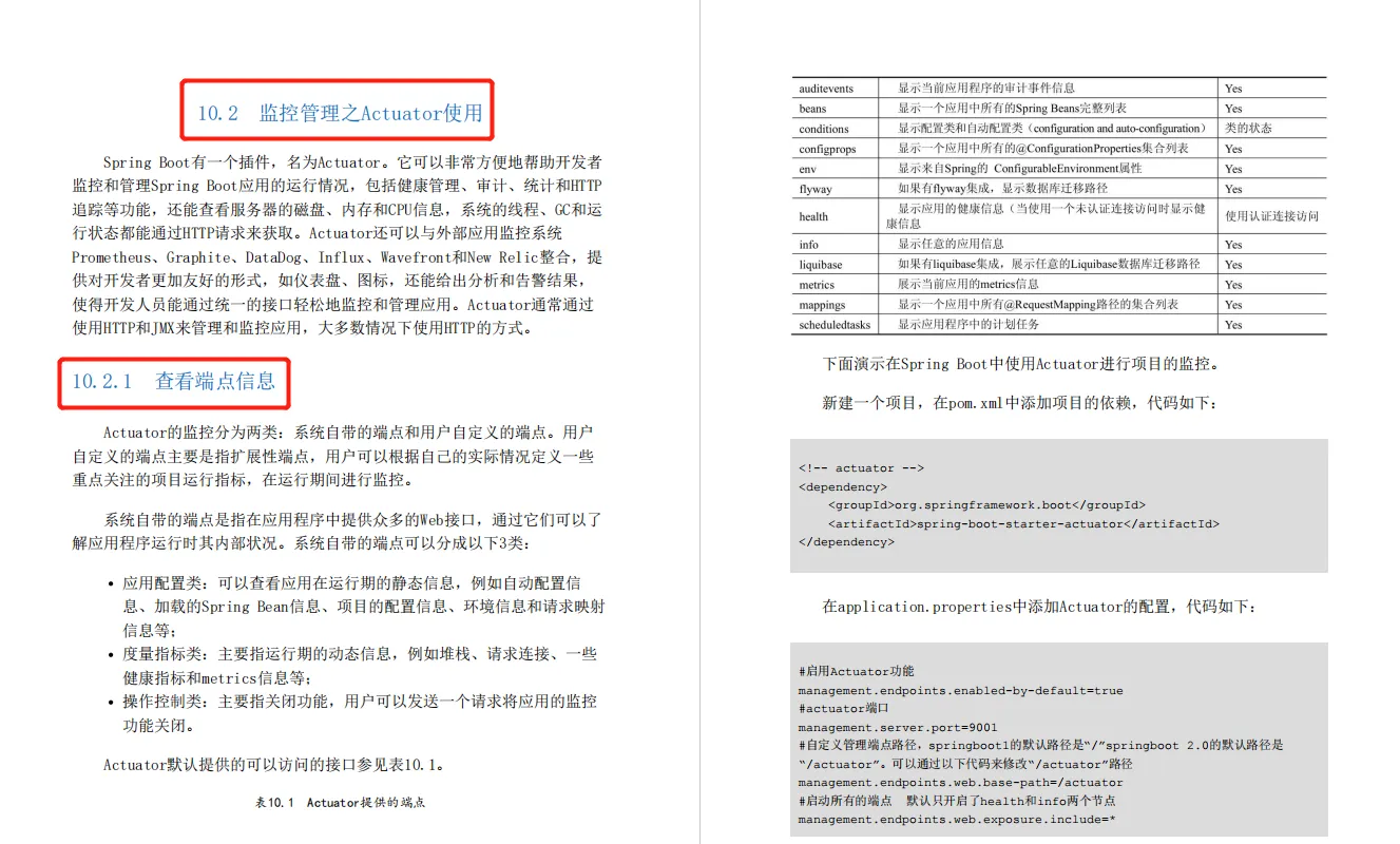 本章介绍了Java项目打成jar包和war包的区别,还介绍了使用Docker将jar构建成自己的镜像后运行项目的过程。在Spring Boot中,可以使用Actuator通过不同的端点查看不同项目的运行情况,常用的端点包括查看项目环境和配置信息的env、查看项目健康信息的heal th、查看项目信息的info和所有请求入口的mappings。