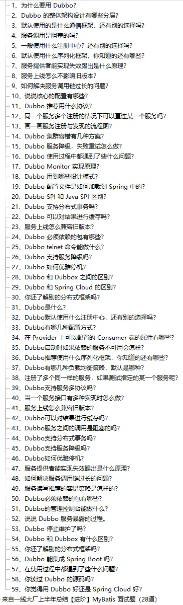 Dubbo部分的面试题题目