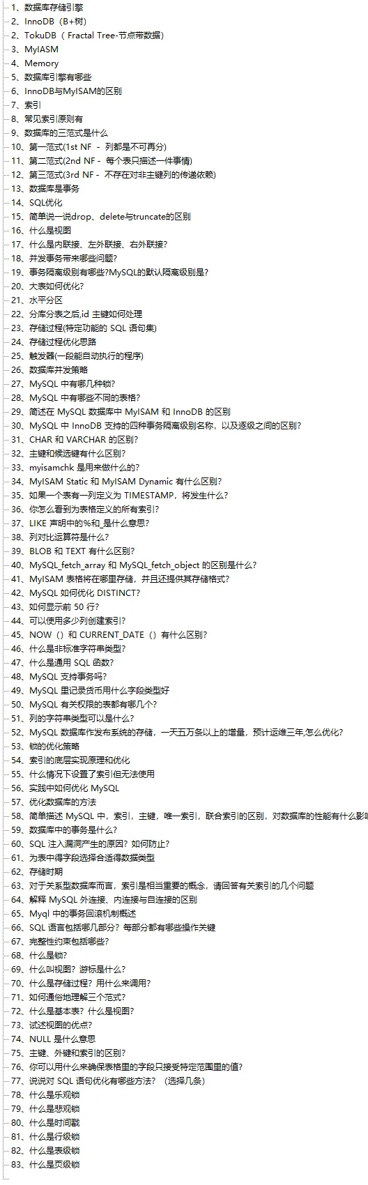 MYSQL面试题题目目录