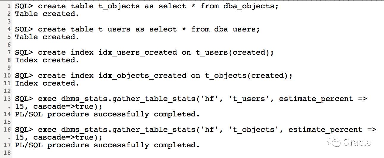 //上面代码准备了必要的数据环境,并收集相关对象的统计信息