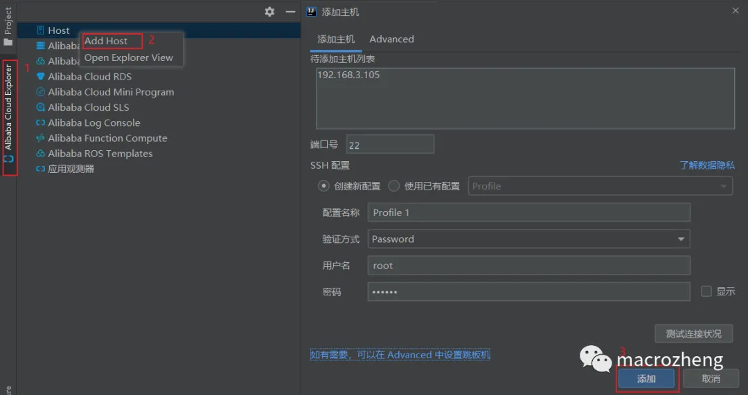• 插件安装完成后,打开左侧面板,右键Host图标我们就可以添加服务器的连接信息了,实现自动化部署之前需要先配置好连接信息;