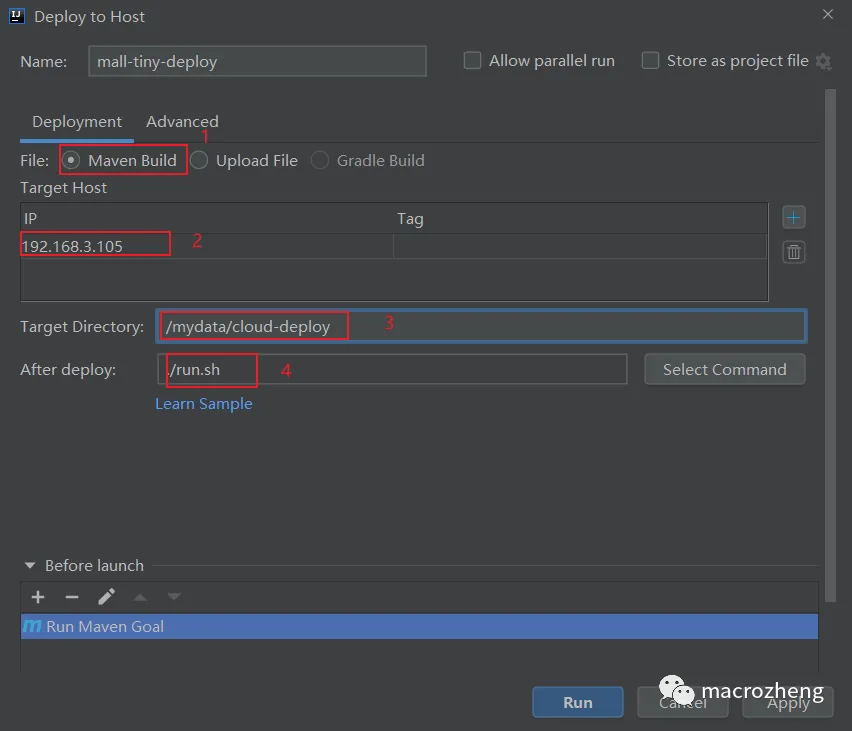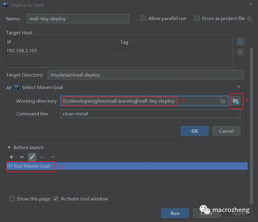 • 接下来编辑下Maven构建的目标,只打包mall-tiny-deploy模块即可;