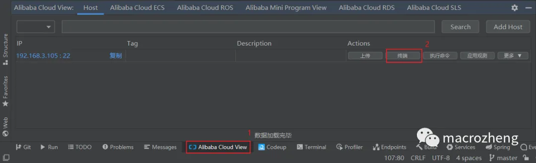 • 当然CloudToolkit的功能远不止于此,它内置了终端工具,在IDEA中管理Linux服务器,用它就够了,直接通过底部面板,点击终端按钮即可打开;