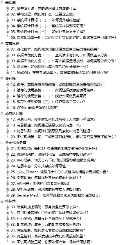 当然,我在这里叽里呱啦说一堆,没实例给你们看相当于fp,毫无营养。这不,借此机会,LZ就把前段时间从阿里退休老大哥的手上搞到的内部高并发系统设计实录分享出来给大家,不管你是刚入行还是有多年经验,这份实录肯定能对您有所帮助!