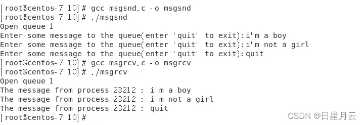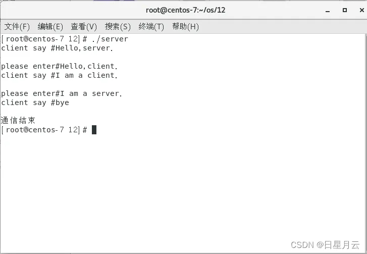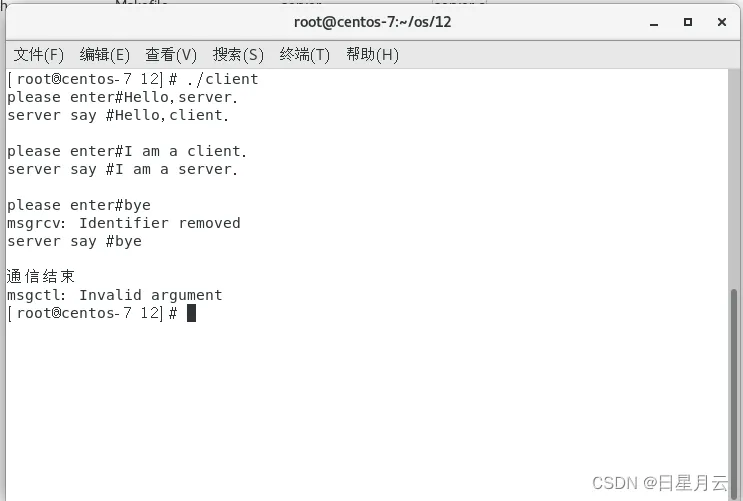 #include"comm.h" int main(){ int msgid=get(); char buf[1024]; while(1){ buf[0]=0; printf("please enter#"); fflush(stdout); ssize_t s=read(0,buf,sizeof(buf)-1); if(s>0){ buf[s]=0; send (msgid,CLIENT,buf); } recv(msgid,SERVER,buf); printf("server say #%s\n",buf); if(strcmp(buf,"bye\n")==0){ printf("通信结束\n"); break; } } destory(msgid); return 0; }