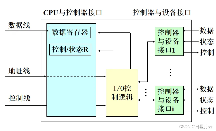 实现CPU↔控制器↔设备的数据交换, 从而实现了CPU到设备的数据传递和设备到CPU的数据传递。