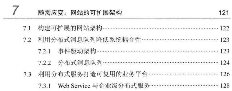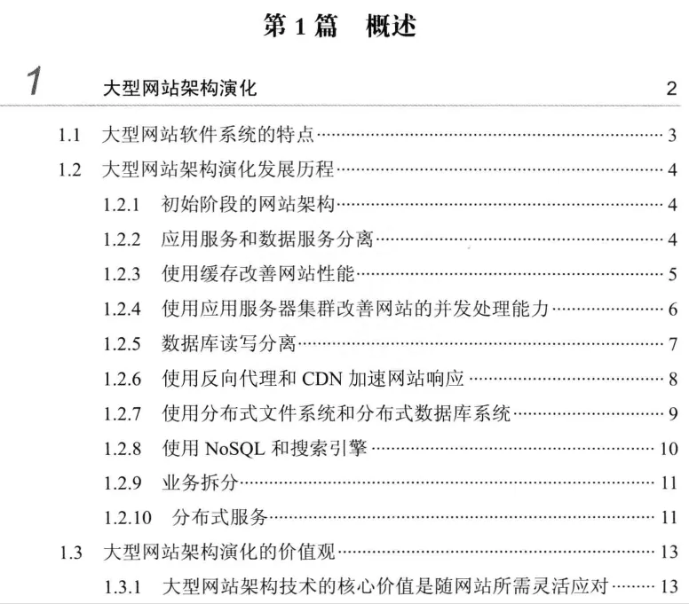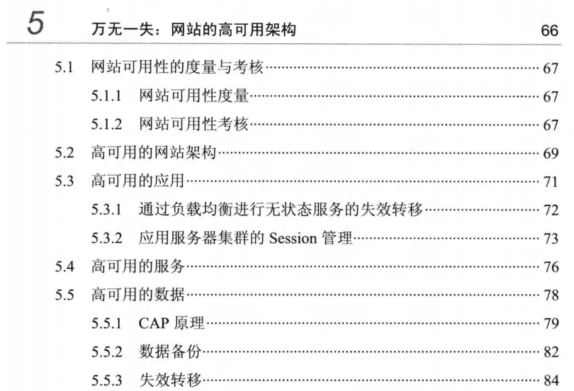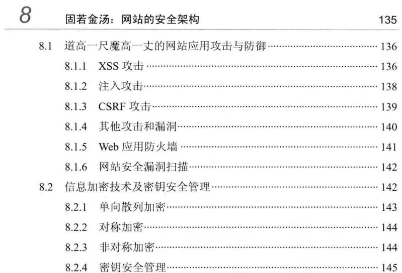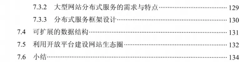 第2篇,从性能、可用性、伸缩性、扩展性、安全这五个要素方面详细描述网站架构核心原理,其中重要的负载均衡、异步处理、分布式缓存等技术方案又在不同章节从多角度进行描述。