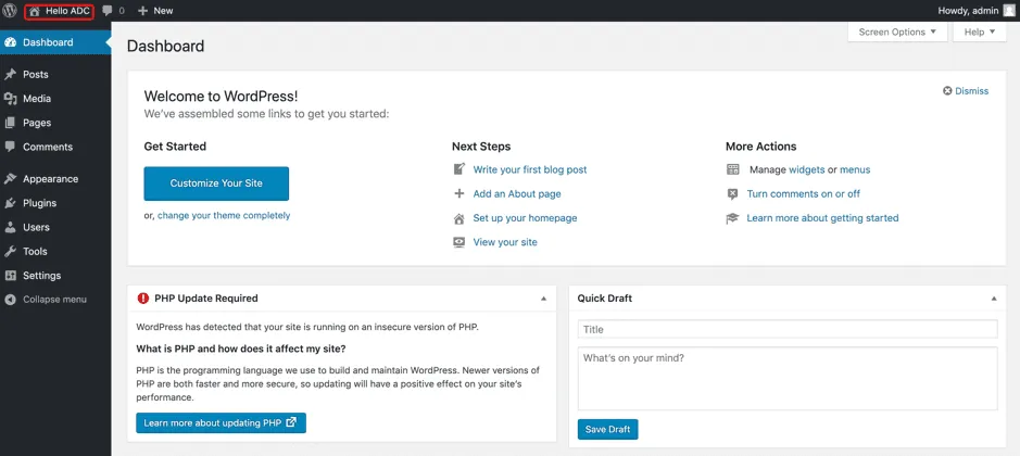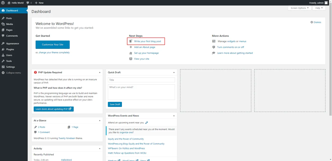 登录后,您就可以根据需要创建内容进行发布了。至此您已完成WordPress的搭建。
