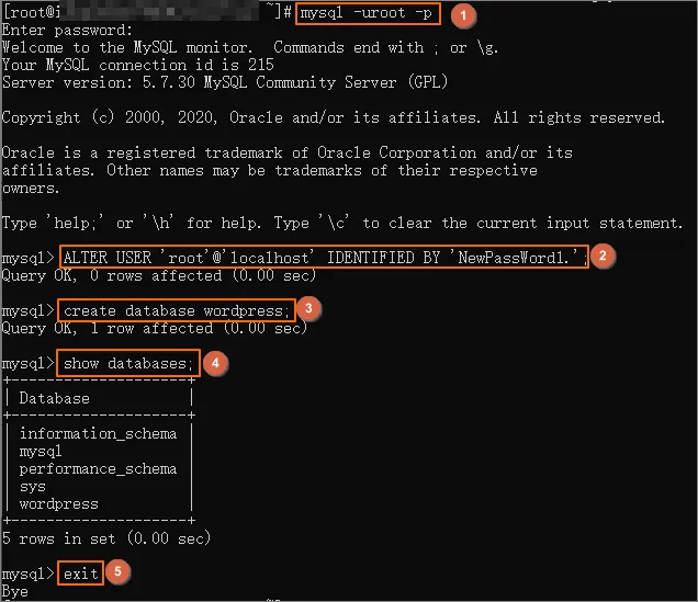 f. 执行以下命令,修改MySQL默认密码。