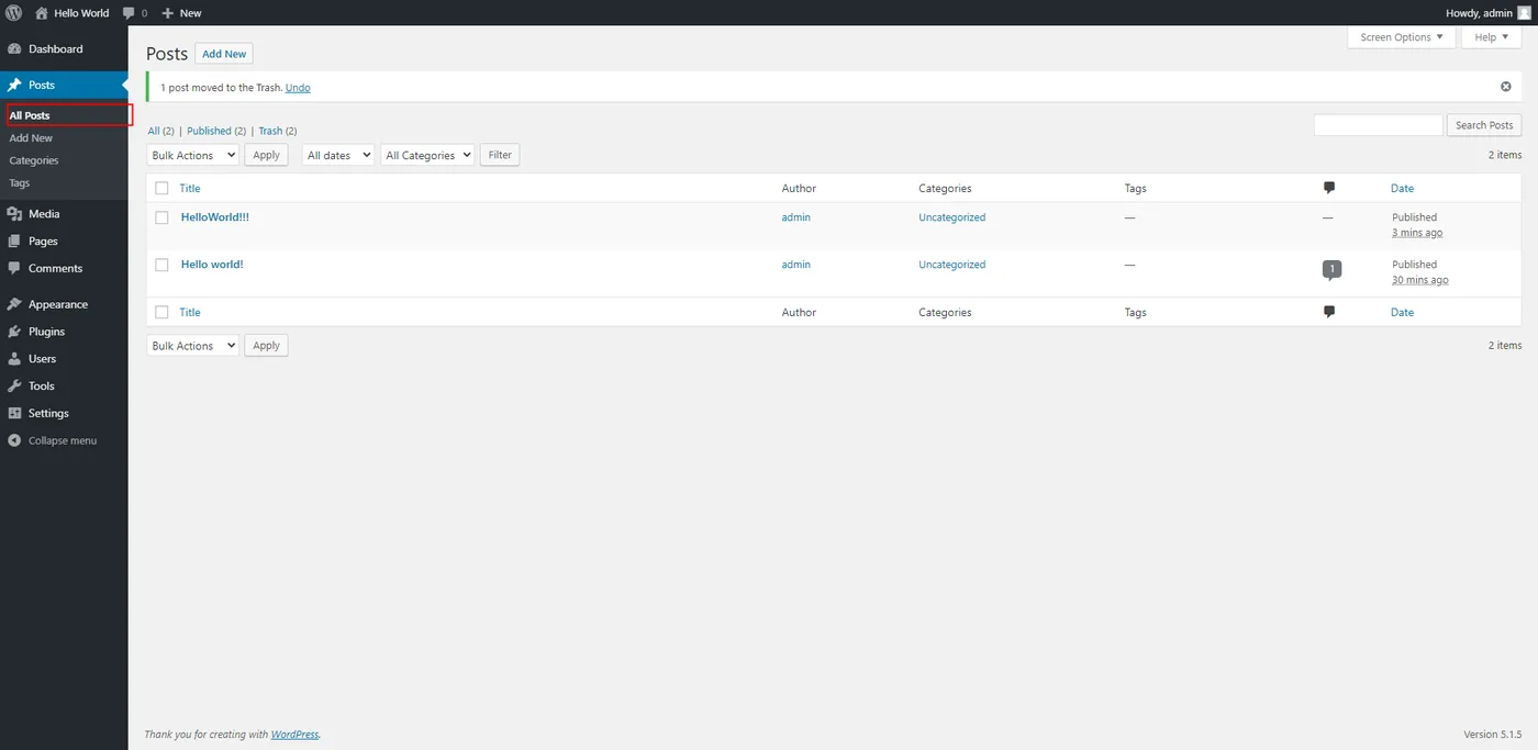 6. 在左侧导航栏,单击【All Posts】查看已发布的帖子。