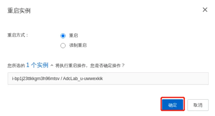 - 找到需要操作的实例,在操作列中,选择更多 > 实例状态 > 重启。