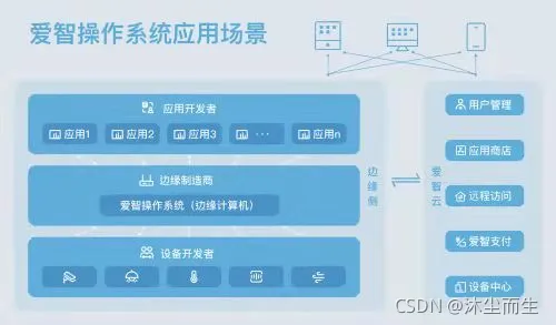 爱智操作系统(EdgerOS),该系统基于边缘计算的优势于物联网发展趋势紧密结合,选择边缘计算为突破口。它部署于物联网应用市场边缘,靠近用户业务数据源头,能够联合物联网产业链的上下游,为用户提供近端边缘计算服务,满足用户在低延时、高带宽、安全和隐私保护等方面的需求。