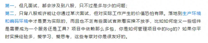 最后想跟大家唠叨一下八股,对于八股大部分人都是爱恨交织的情绪。