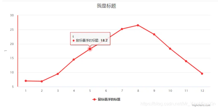 <template> <div> <div class="highcharts-container" id="map"></div> </div> </template> <script> import Highcharts from 'highcharts/highstock'; import HighchartsMore from 'highcharts/highcharts-more'; import HighchartsDrilldown from 'highcharts/modules/drilldown'; import Highcharts3D from 'highcharts/highcharts-3d'; HighchartsMore(Highcharts) HighchartsDrilldown(Highcharts); Highcharts3D(Highcharts); export default { name: "flows", data() { return { chart: null } }, mounted() { this.initChart(); }, methods: { initChart() { var options = { title: { text: '我是标题'//标题 }, xAxis: { categories: ['1', '2', '3', '4', '5', '6', '7', '8', '9', '10', '11', '12'] //横坐标 }, yAxis: { title: { text: '1'//侧面的标题 }, lineWidth: 2,//线的宽度 lineColor: '#F33',//线颜色 }, series: [{ name: '鼠标悬浮的标题', //鼠标悬浮的标题 data: [7.0, 6.9, 9.5, 14.5, 18.2, 21.5, 25.2, 26.5, 23.3, 18.3, 13.9, 9.6],//数据 color: '#F33' //点的颜色 }] }; this.chart = new Highcharts.Chart('map', options); //初始化执行 } }, created() { } } </script> <style scoped> .highcharts-container { width: 800px; height: 400px; } </style>
