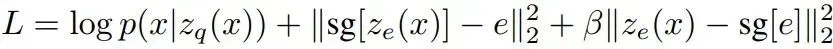 sg 是停止梯度操作符,用来停止参数学习。由于从解码器到编码器的直接路径,重构损失项不会向嵌入提供学习信号。所以使用第二项来优化码本,将嵌入推向编码器表示。
