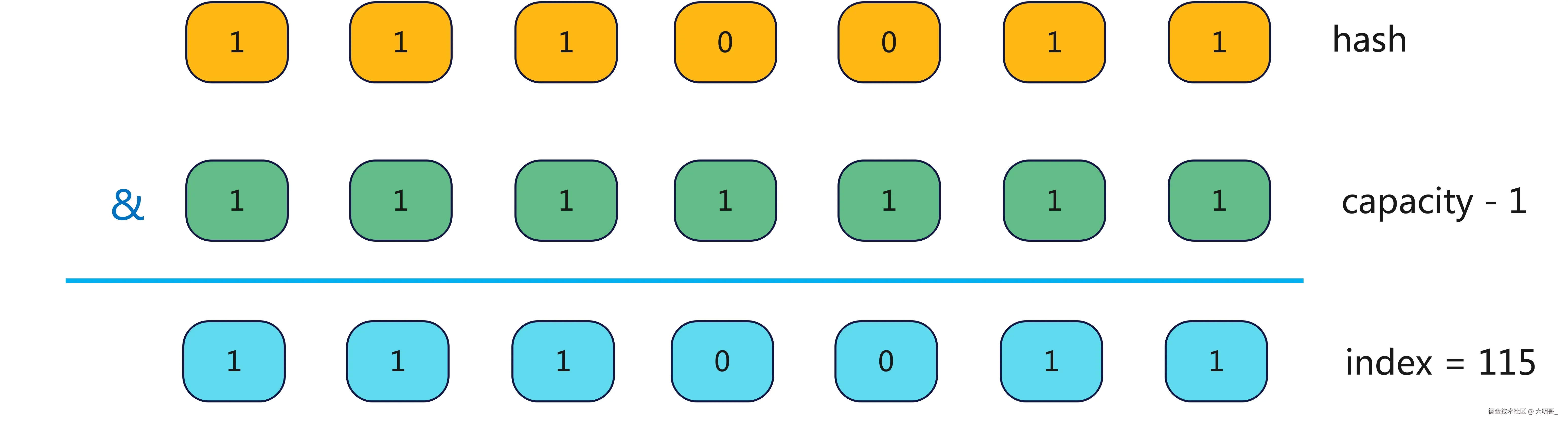 - 位运算效率:与使用取模(%)操作相比,使用位运算来计算索引位置更加高效。当容量是