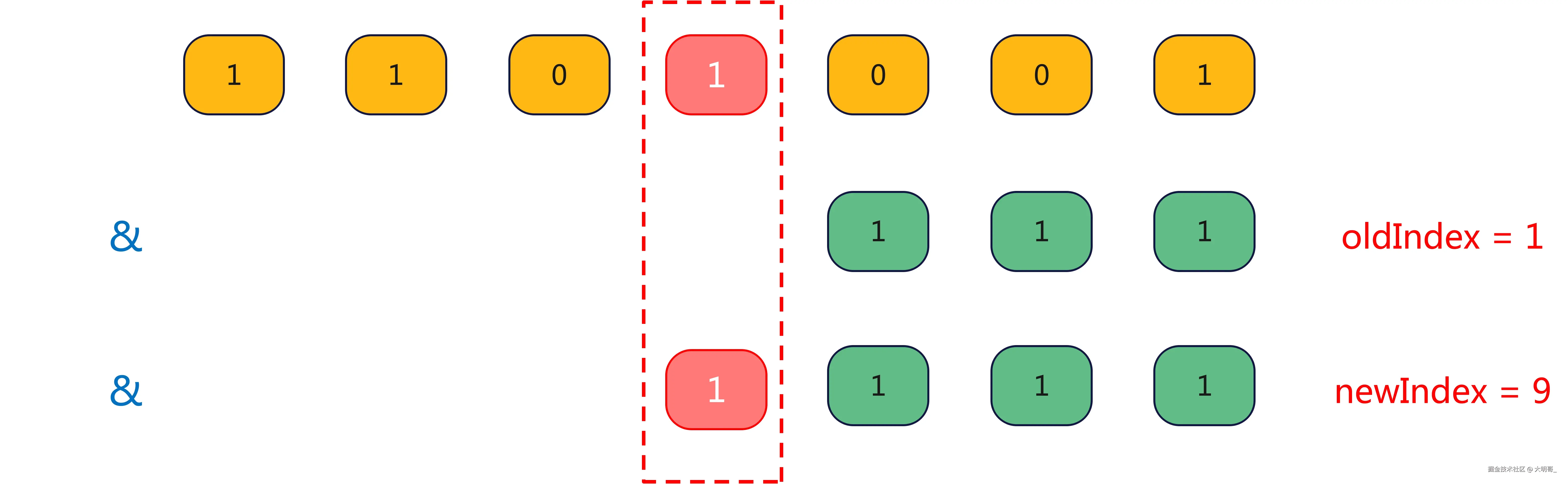 看不懂?举个例子,假设 n = 4,x = 25。25 % 2^4 它是等于 25 / 2^4 的余数,即 25 >> 4(11001 右移 4 位),而被移除到的部分(4 位 1001)就是我们的余数,即x 除以 2^n 的余数只与 x 的二进制表示中的最低 n 位有关。而 25 & (16 -1) = 11001 & 1111 = 1001。