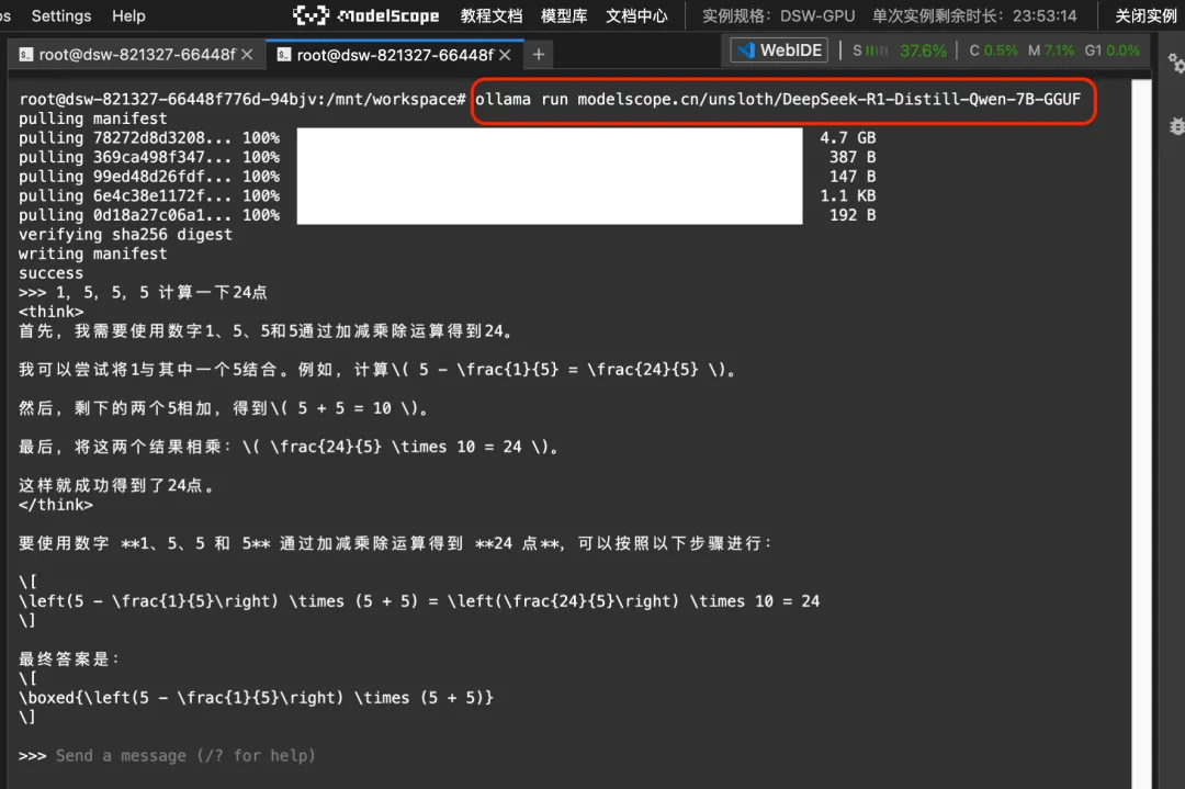 在魔搭社区免费算力上(单卡24G显存),使用vLLM推理deepseek-ai/DeepSeek-R1-Distill-Qwen-1.5B