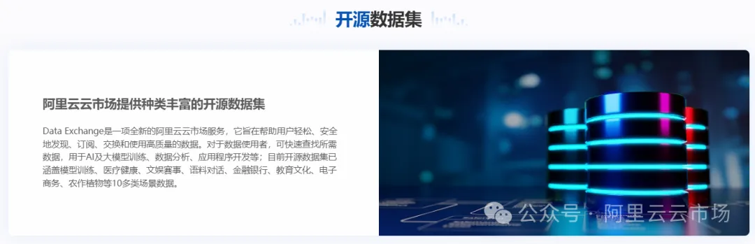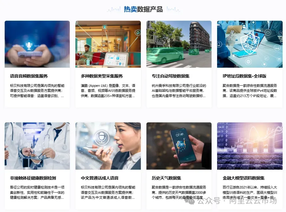 在当今数据驱动的时代,高质量的数据价值日益凸显,通过专业化的数据集,能够精准捕捉行业特征,无论是在医疗、金融还是教育领域,丰富精准的语料库能助力算法更好地理解复杂场景,提升模型训练的准确性与适用性。为此,杭州数据交易所联合阿里云云市场共建“人工智能板块-阿里云专区”和“数智产业链-阿里云云市场专区”,已于9月23日正式上线!