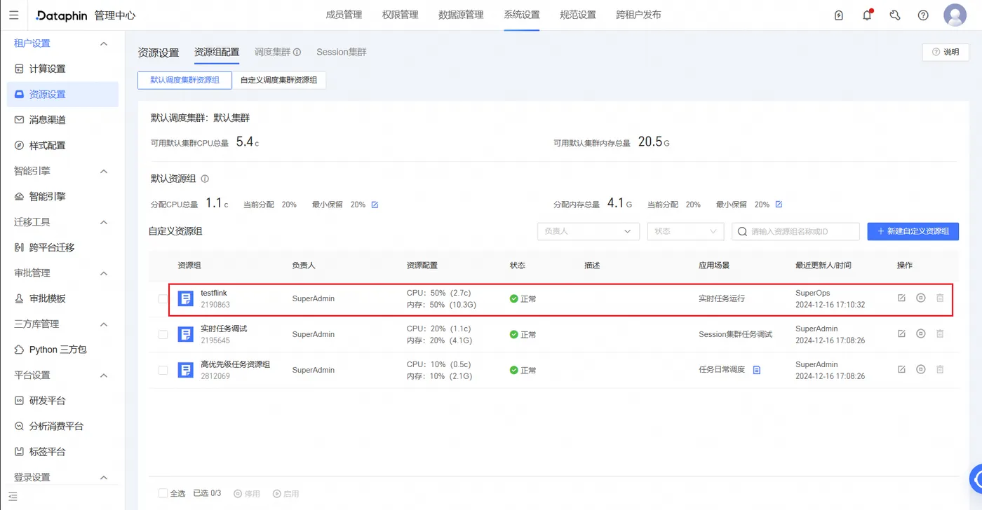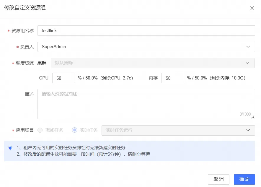 3、创建实时任务自定义资源组,用于分配运行实时任务的资源