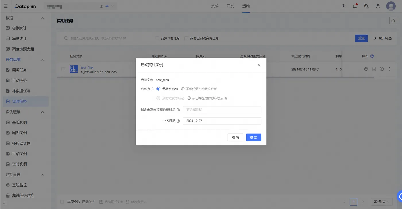 首先,实时研发基于 Apache Flink,因此需要一个独立的 Flink 集群。Dataphin 提供了基于 Kubernetes 的 Flink 部署模式,允许利用调度集群运行flink任务。