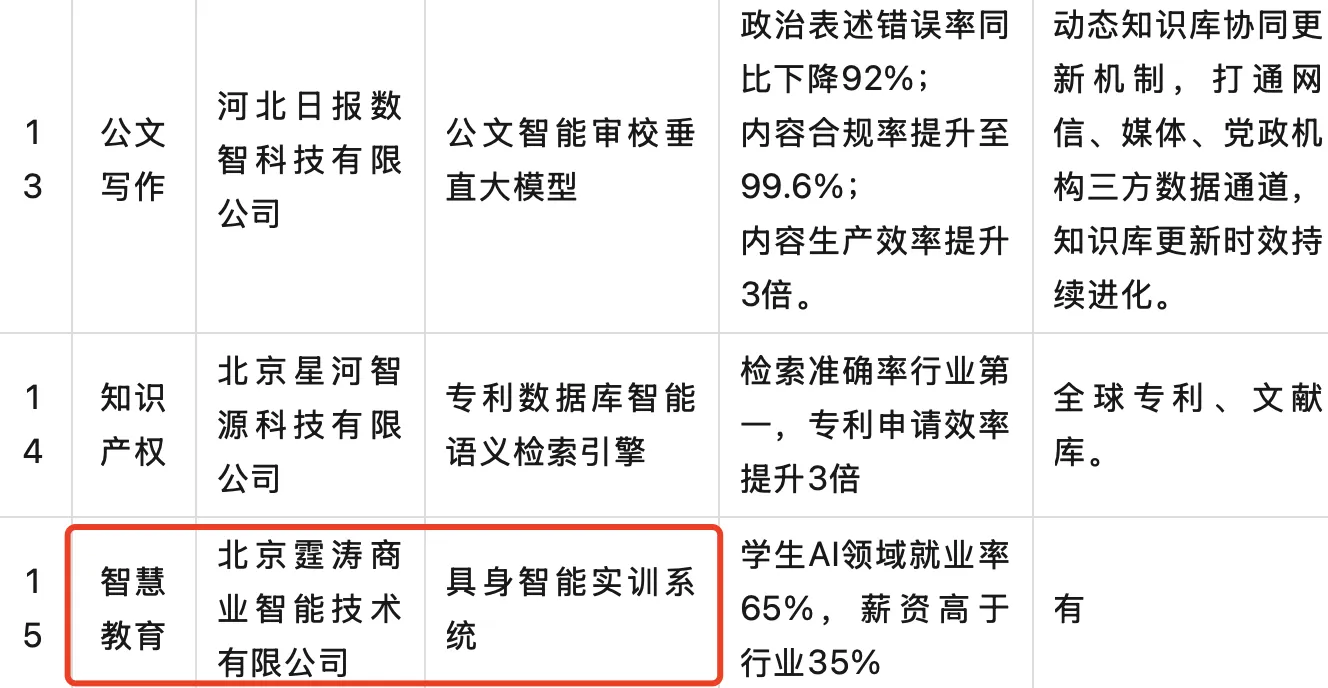 此次征集吸引了全国35家企业和机构参与,覆盖政务服务、工业制造、智慧医疗等12个重点领域。经过严格评审,TsingtaoAI凭借其具身智能实训方案的技术深度、可落地性及社会价值脱颖而出,成为智慧教育领域唯一入选项目。