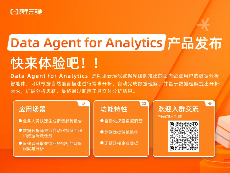 阿里云瑶池数据库生态工具产品重磅升级,推出“Data+AI能力家族”,并举办了为期3天的全栈智能实践开放日活动。发布会上首次公开了 “Data Agent for Analytics、Data Agent for Meta、DAS Agent”等瑶池数据库Data Agent系列能力,以工具智能化 × 智能化工具的双引擎重构数据与AI的协同边界,揭秘AI时代数据价值释放的全新路径。以下为开放日内容回顾: