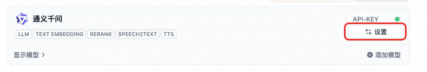 - 在设置--模型提供商处安装模型供应商,在这里我们选用了通义千问的模型,可以将在百炼平台获取API-KEY 输入,验证绿灯即可。