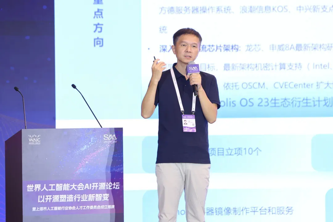 7 月 28 日上午,世界人工智能大会 AI 开源论坛——以开源塑造行业新智变暨上海市人工智能行业协会人才工作委员会成立揭牌仪式(以下简称“论坛”)顺利举办。龙蜥社区理事长、阿里云智能集团研发副总裁马涛受邀出席本次论坛,阐述了龙蜥社区面向 AI 时代的三个重点方向,分享了为抓住 CentOS 停服迁移、“云 + AI” 原生应用的创新机会,社区九大技术方向聚焦在三大运营计划上取得的突破。