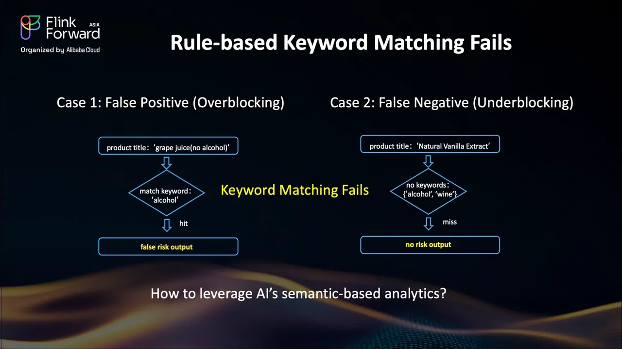 想象一个标题为"葡萄汁(无酒精)"的产品。关键词"酒精"触发了规则,系统将其标记为风险。但它明确说了"无酒精"!这是一个误报——我们阻拦了一个安全的产品,浪费了人工审核时间,并可能导致客户不满。